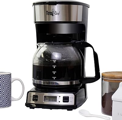 Total Chef Drip Coffee Maker - 12-Cup Programmable Coffee Machine With Glass Pot, Pause and Pour, Auto Shut-Off, Large Water Reservoir, Reusable Filter, Dishwasher Safe Carafe, Percoladora de Cafe